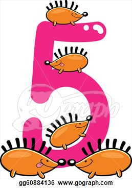 Number five clipart: Number five and 5 hedgehogs