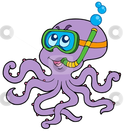 Cute octopus clipart: Octopus snorkel diver stock