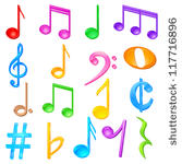Colorful music notes symbols: of colorful music note
