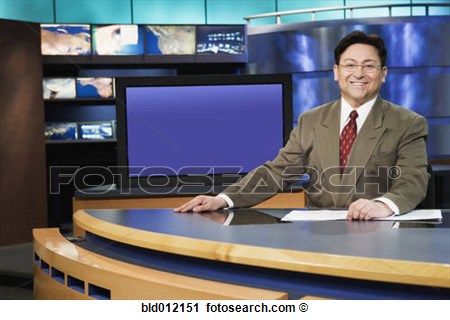 Newsroom clipart: of male anchor in newsroom