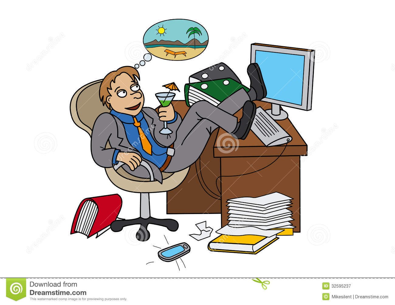 Workplace clipart: Office worker dreaming about
