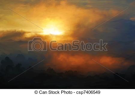 Dawn clipart: Oil paint dawn - csp7406549