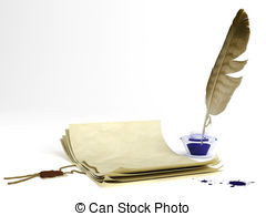 Poem clipart: Old paper and quill pen - Old