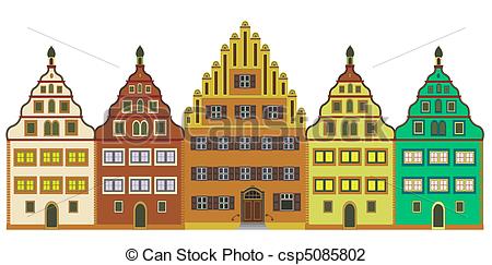 Town clipart: Old town, isolated over white