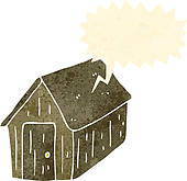 Cabin in the woods clipart: old wood cabin retro cartoon