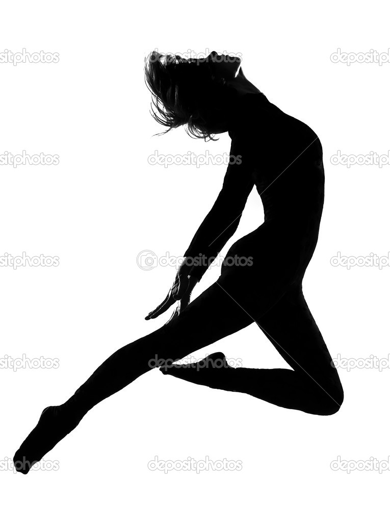 Dancer jumping silhouette: One woman modern dancer