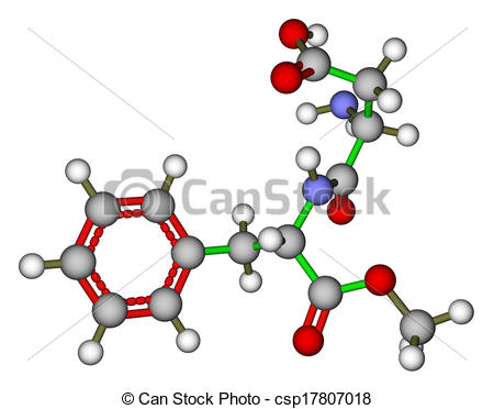 Sweetener clipart: Optimized molecular structure of sweetener aspartame on a white background