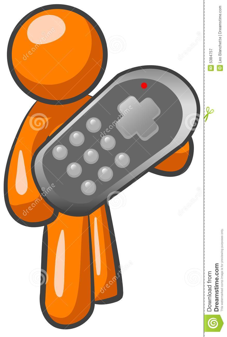 Tv remote clipart: Orange man and remote control