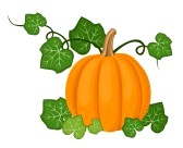 Green pumpkin leaf clipart: Orange pumpkin with leaves.
