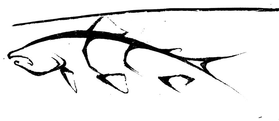 School of fish drawing: Original charcoal drawing of