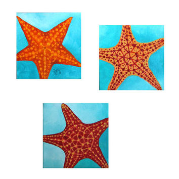 Starfish painting: Original painting, 3 SEASTARS,