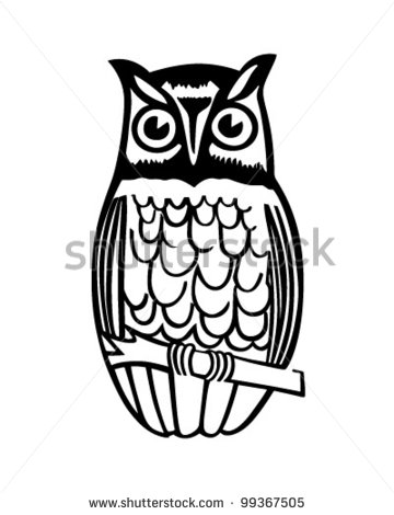 Wise owl clipart black and white: Owl On Branch - Retro Clipart