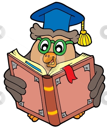 Owl reading clipart: Owl teacher reading book 1b