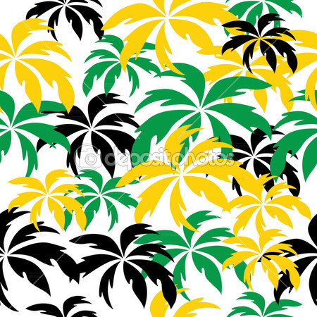 Colorful family tree background: Palm trees in Jamaica colors.