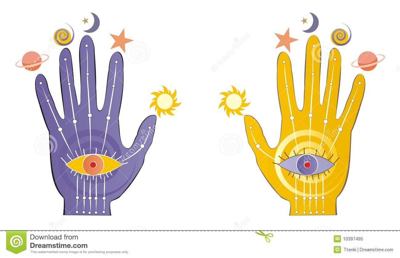 Psychic clipart: Palms with psychic symbols