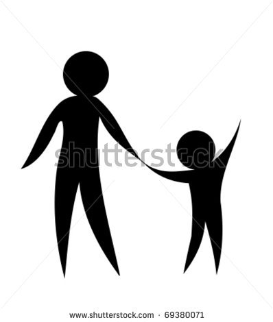 Children holding hands clipart black and white: Parent and child holding hands