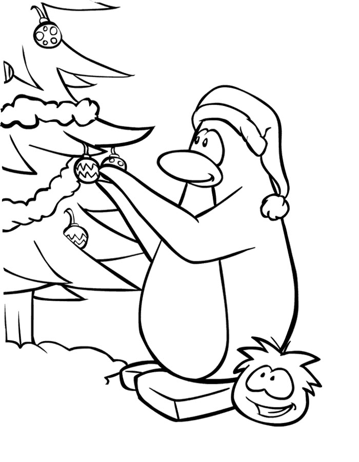 Christmas penguin coloring pages: Penguin-Decoration-Tree- ...