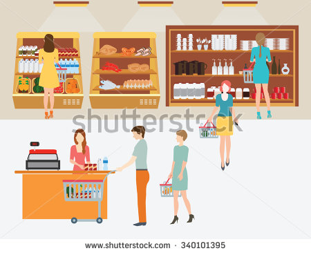 Aisle clipart: People in supermarket grocery
