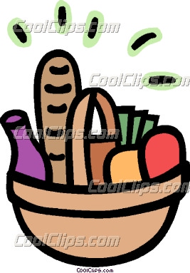 Picnic basket clip art: Picnic basket filled with food