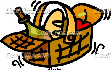 Picnic basket clipart: picnic basket with food in it