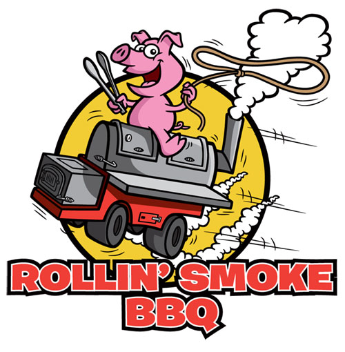 Pig bbq logo: Pig on BBQ Smoker Cartoon Logo