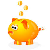 Cute piggy bank clipart: Piggy bank with coins