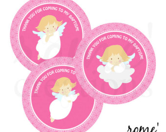 Pink baptism cross: Pink Angel Cupcake Topper,