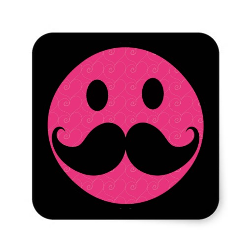 Pink smiley face with mustache: Pink Smiley Face Mustache