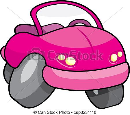 Toy car clipart: Pink toy cartoon car isolated