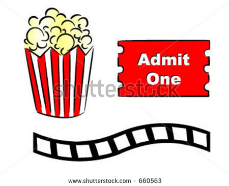 Movie ticket vector: popcorn movie ticket and film