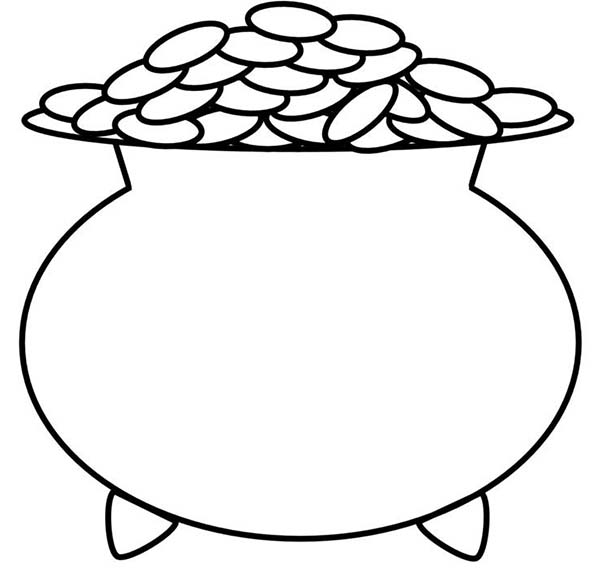 Rainbow pot of gold coloring page: Pot of Gold Coloring Page: