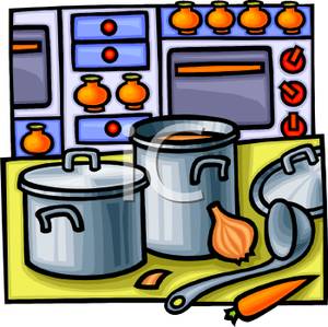 Kitchen counter clipart: Pots, Pans, Kitchen Utensils