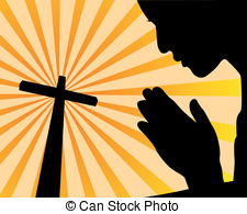 Prayer clipart: praying before the cross on an