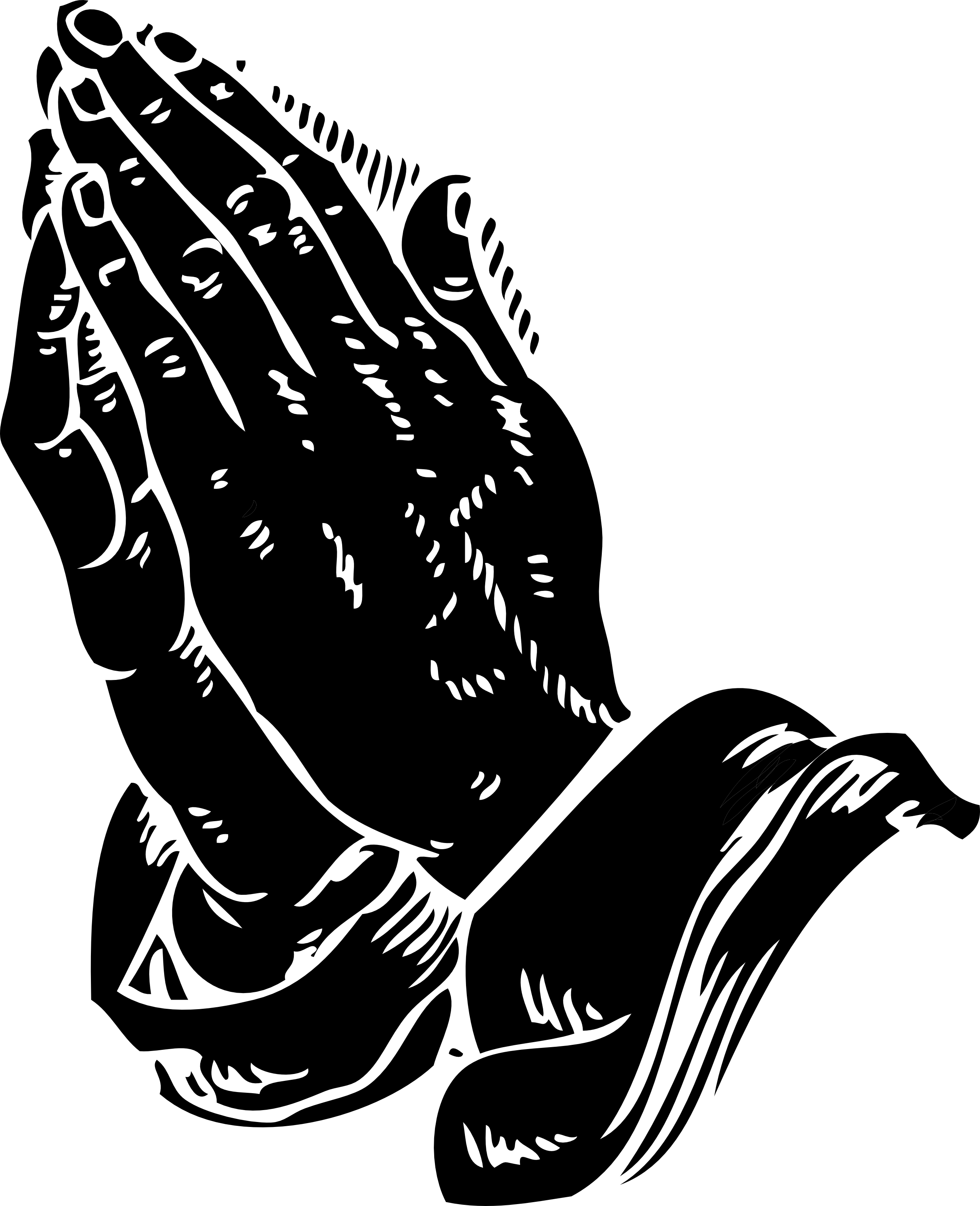 Open praying hands drawing: Praying Hands Black White