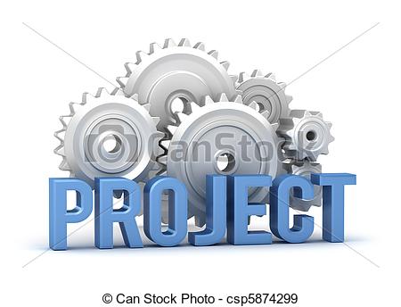 Project clipart: Project word with cogs in