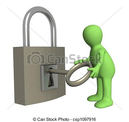 Lock clipart: Puppet opening lock - Person