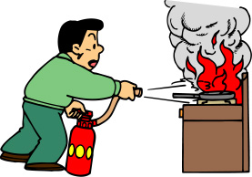 Fire extinguisher putting out fire: Put out a fire before it gets