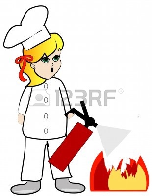 Fire extinguisher putting out fire: putting out kitchen fire
