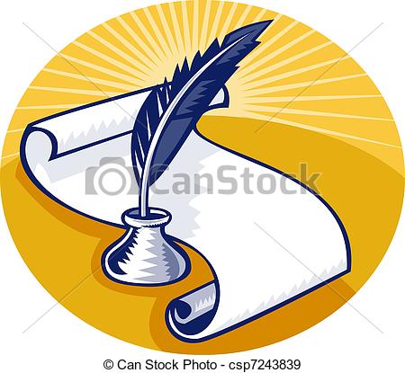 Quill and paper clipart: quill pen and ink well with