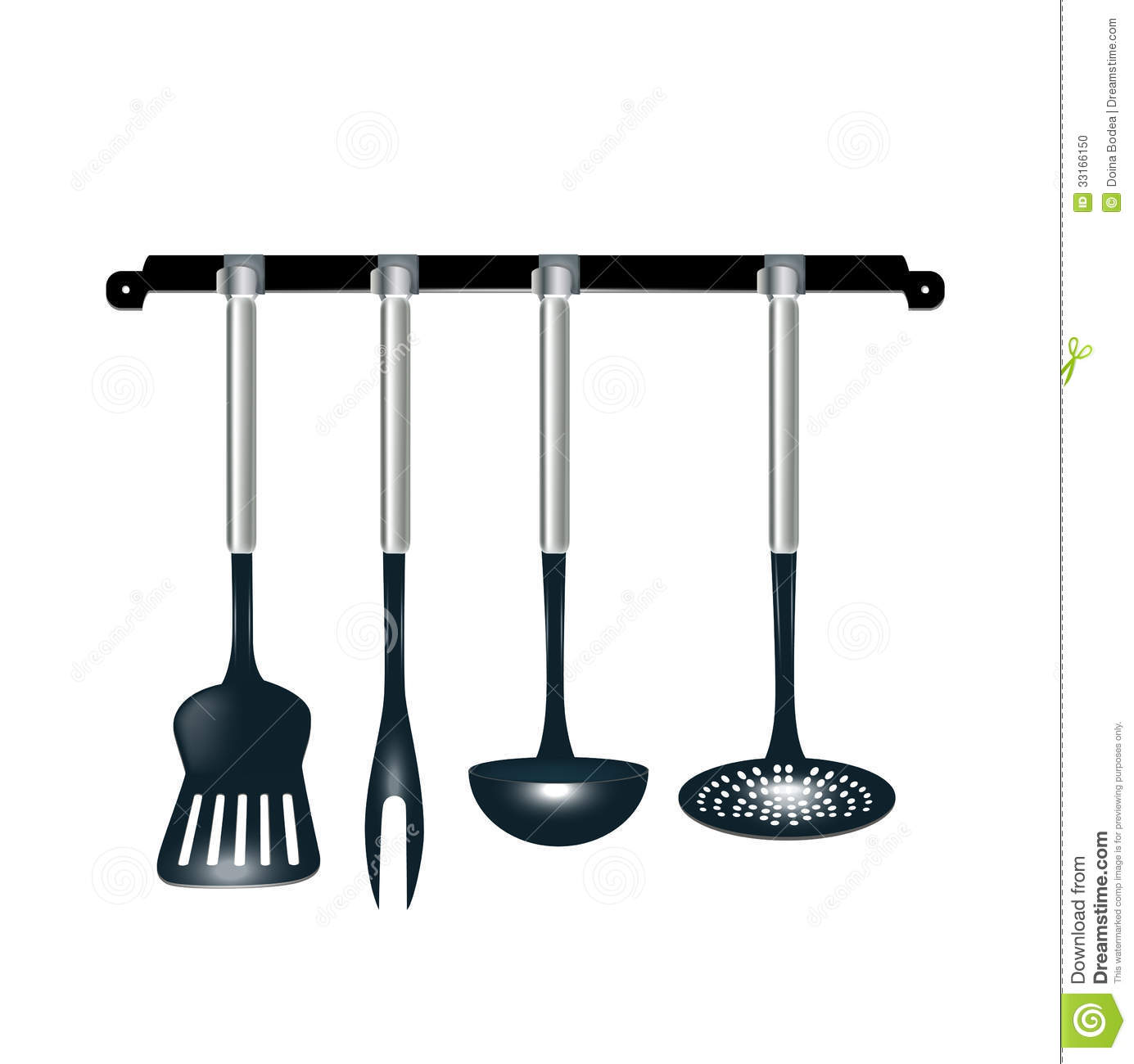 Hanging cooking utensils clipart: Rack of kitchen utensils