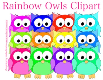 Owl math clip art: Rainbow Owls Clipart