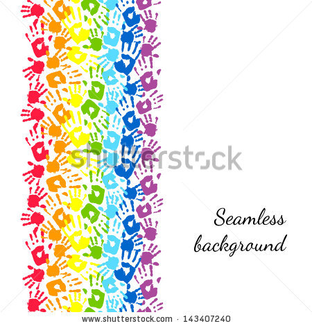 Handprint clipart border: rainbow seamless border