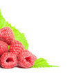 Healthy food border: Raspberry with green leaves
