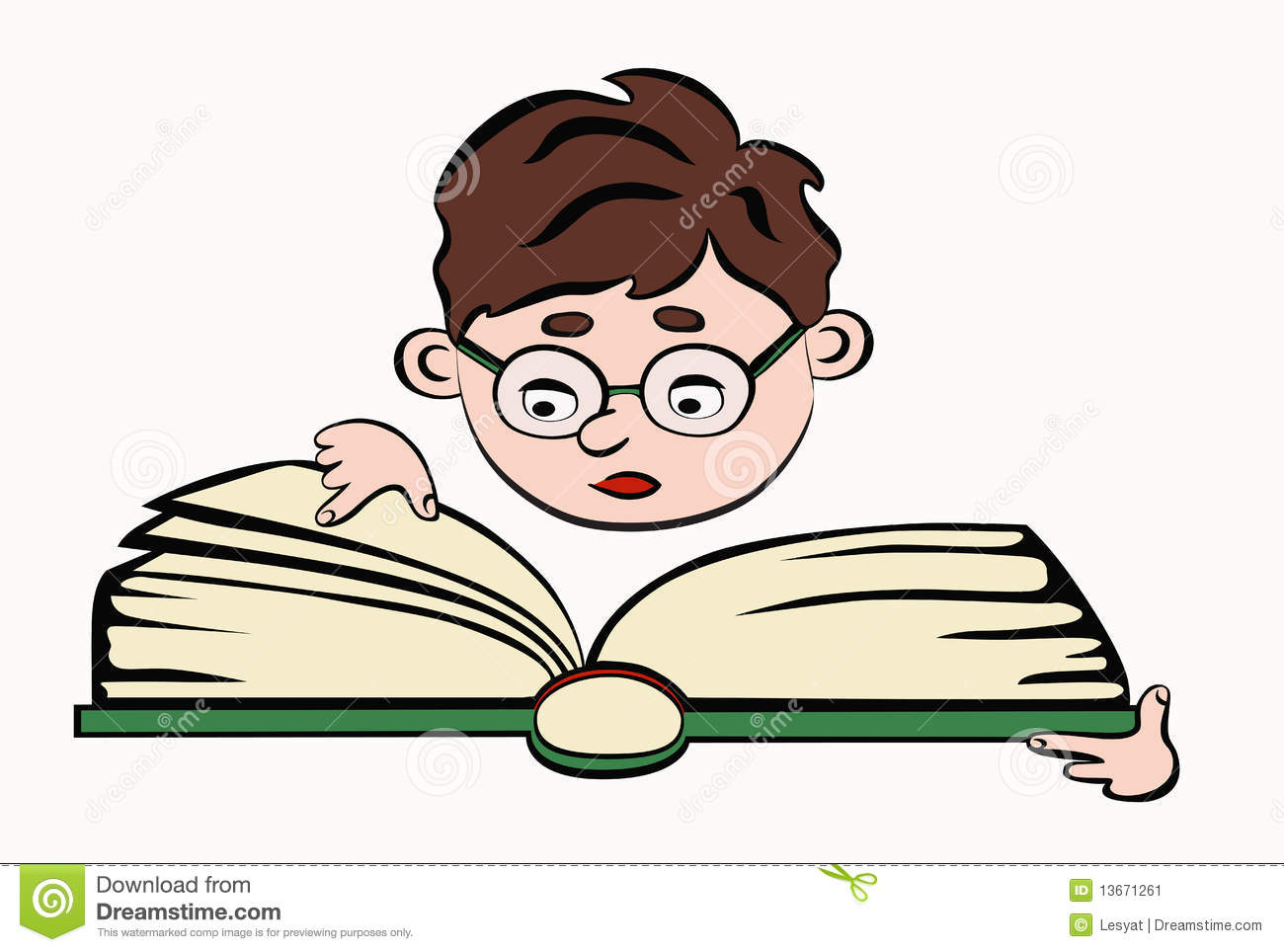 Reading glasses clipart: Reading boy with glasses.
