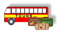 Tour bus clipart: red and yellow bus with