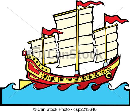 Junk clipart: Red and yellow Chinese Junk at