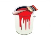 Paint bucket and brush: red paint bucket and brush