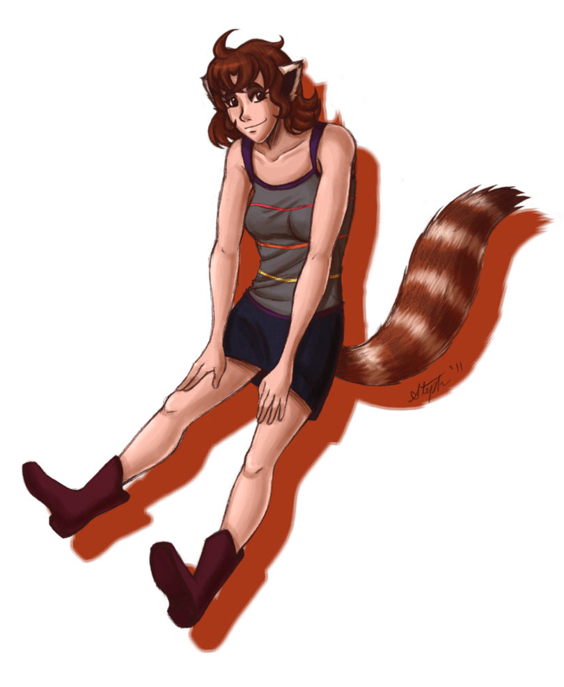Red panda drawing: Red panda girl - colored
