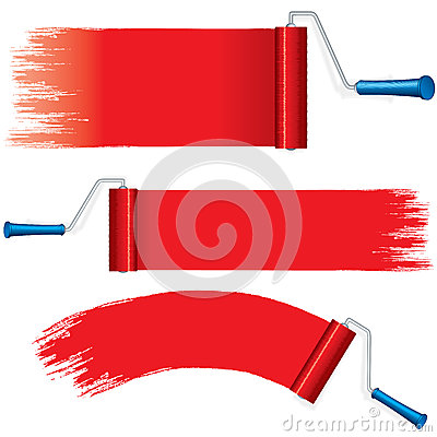 Paint brush stroke vector: Red Roller Brush Painting