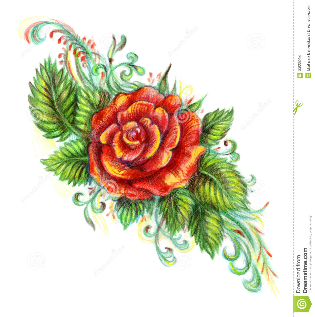 Colored pencils drawings: Red rose drawing with Colored